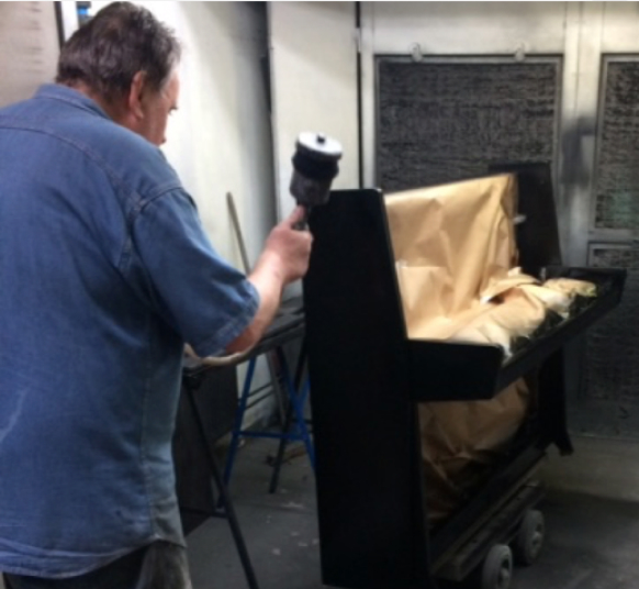 Wij hebben een eigen spuiterij. Hierdoor kunnen wij piano’s weer netjes opknappen.
